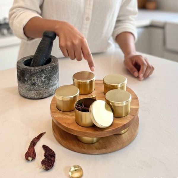 Whether you're storing your daily spices or displaying it as a centrepiece, this masala dabba brings warmth, charm, and a dash of luxury to your kitchen countertop
